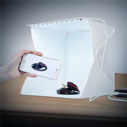 fosoto Portable LED Light Folding Studio Diffuse Soft Box 24cm 9" Black White Mini Photography Background Photo Studio lightbox