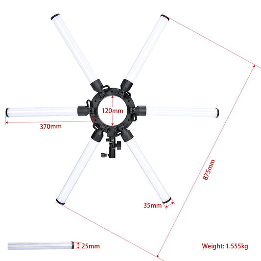 fosoto TL-1200S Photographic lighting 6 Tubes 336 leds 3200-5500K 120W Dimmable Camera Photo Phone Video Ring Light Lamp Stand