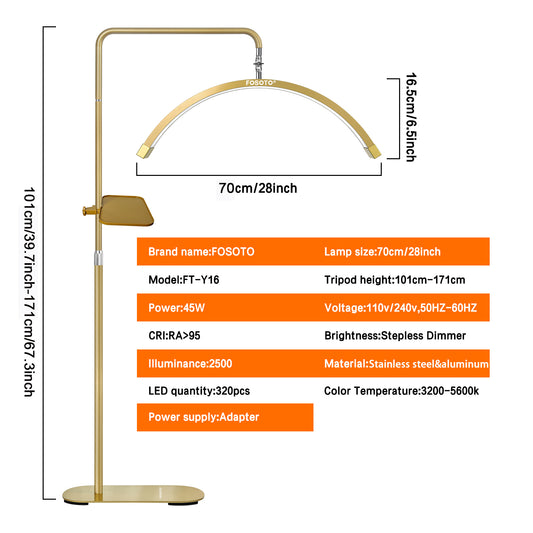 Fosoto Professional 28” 45W LED Half-Moon Beauty Light with Tool Tray for Lash Extension & Makeup