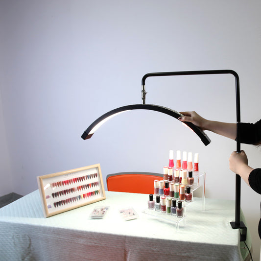 Fosoto Half-Moon 29'' LED Light with Phone Clip – Multifunctional Ring Lamp for Salon, Streaming, Lash & PMU Work