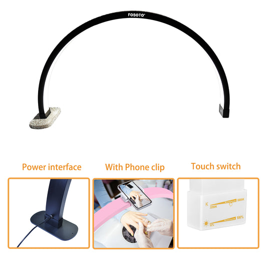 Fosoto Multifunctional Half Moon Lamp Video Ring Lash Light For Beauty Facials Salon Tatoo Live Stream Photography Photo TikTok