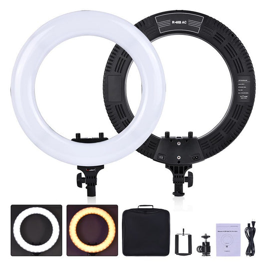 Fosoto R48B 48W 3200-5600K 432 LED iluminación fotográfica regulable foto de cámara teléfono fotografía anillo lámpara de luz y soporte de trípode
