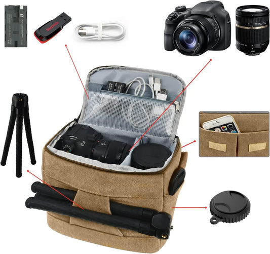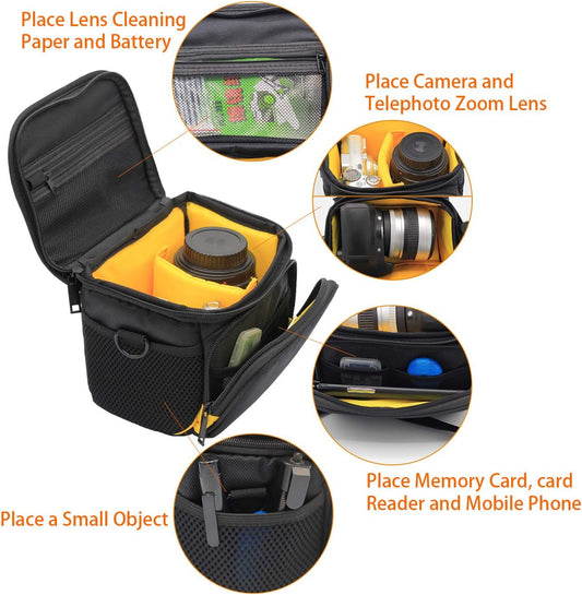 FOSOTO - Funda para cámara con bandolera antigolpes compatible con Canon EOS Rebel T5 T6 T7 T8i T100 SL3 XTi Panasonic G85 G95 GH5 G7KS Olympus OM-D E-M1 DSLR SLR Camera