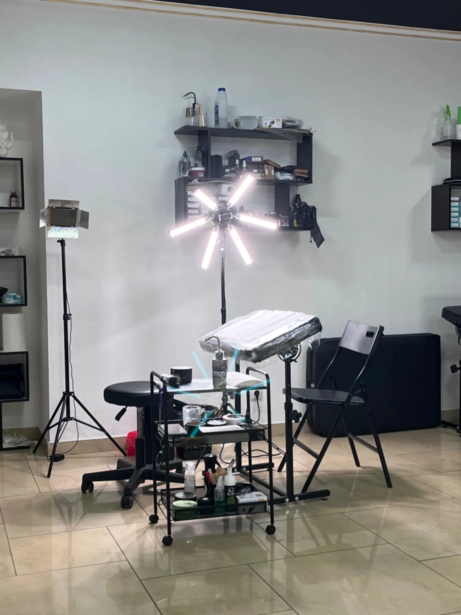 Sleek and modern aesthetic look,Good Material with industrial steel&aluminum,suitable for beauty salon, but also meets the needs of live streaming,makeup,photography,hair beauty ect.