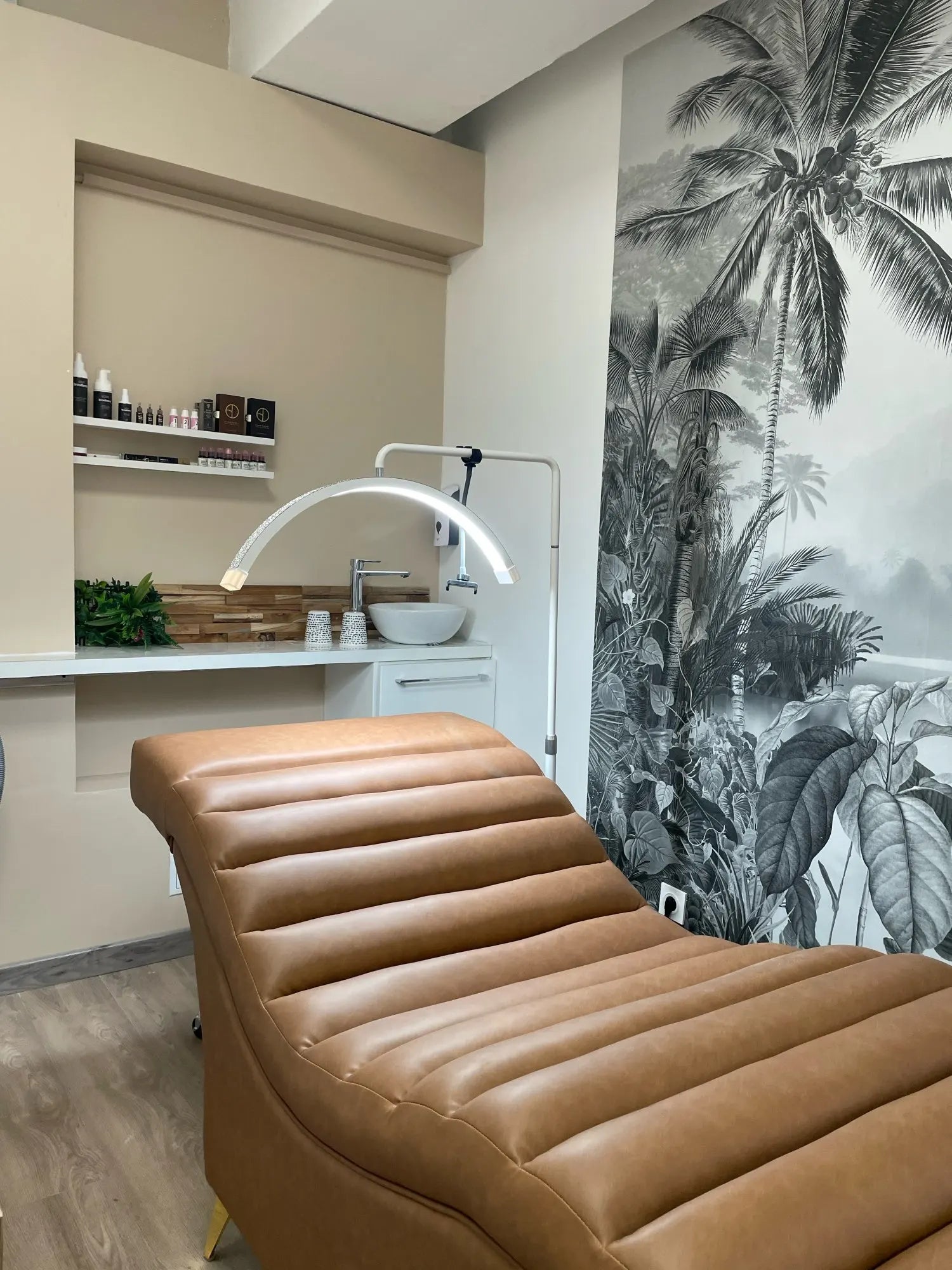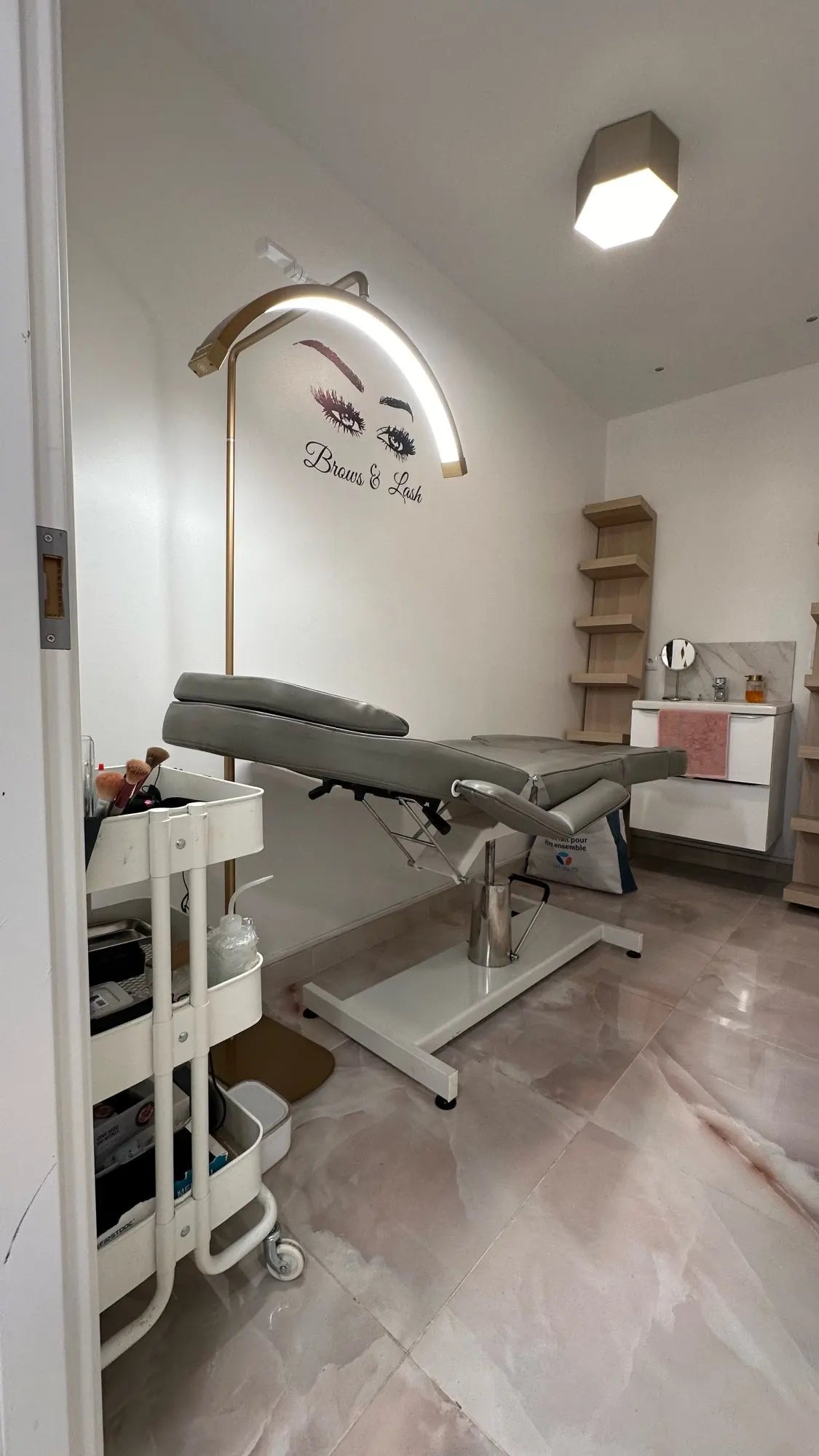 the wall mount arm helping to walk through in your beauty salon, Making the space feel bigger.