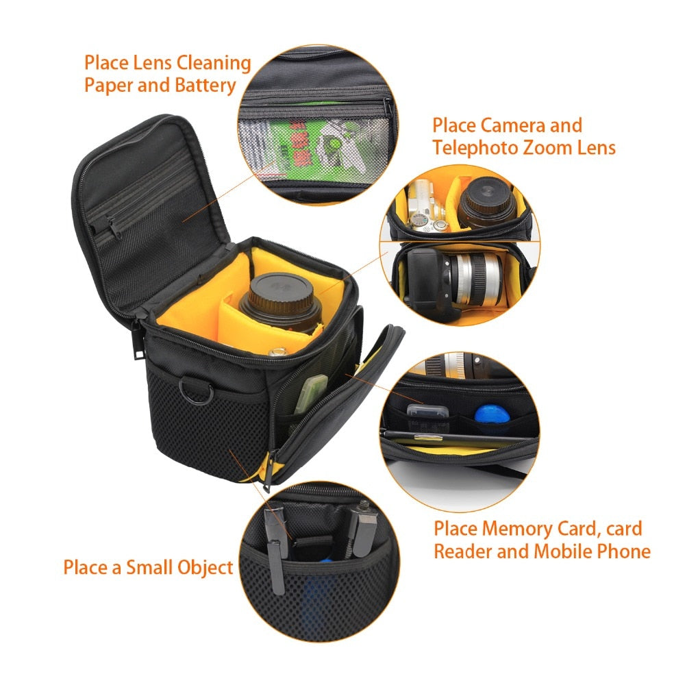 Sac à bandoulière fosoto pour appareil photo reflex numérique avec housse de pluie étanche pour Canon Nikon SLR D3400 D3100