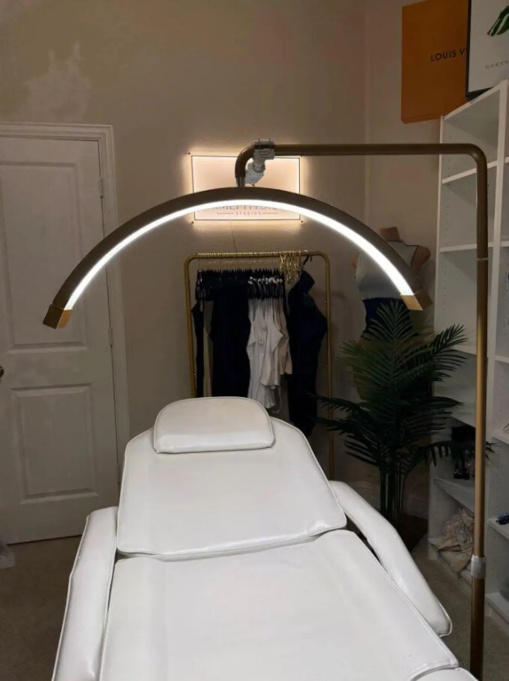 * This half moon shaped salon light is a nice fill light for makeup,lash extension and tattoo