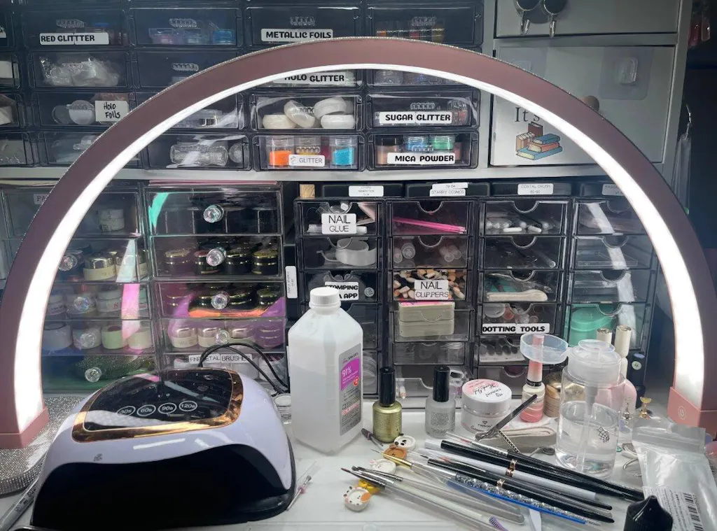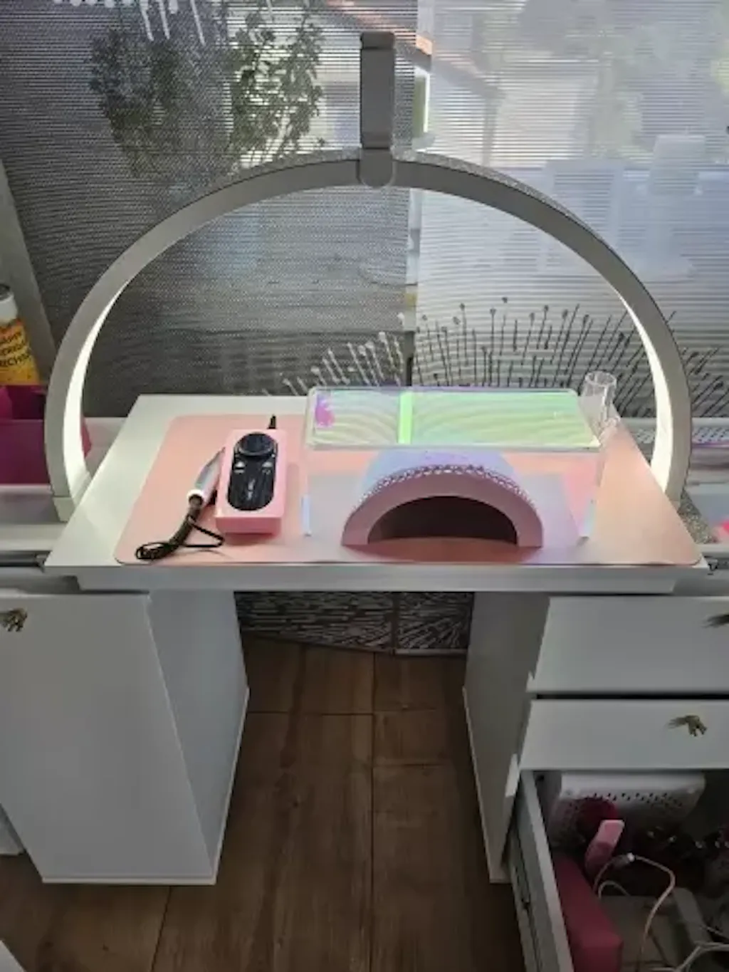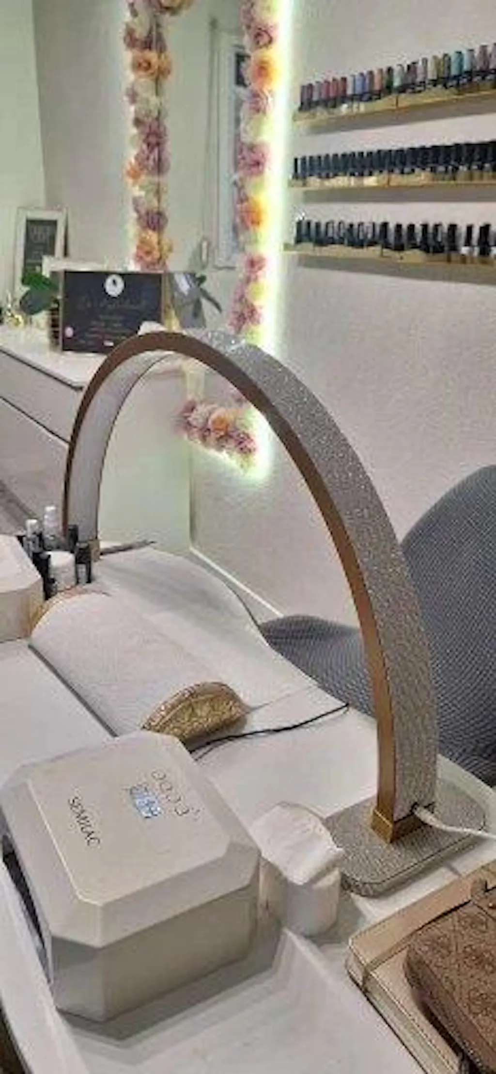 • Half Moon Design makes more space for nail workbench to hold nail polish and other nail tools that need to be used. At the same time, it has a wide range of lighting coverage, so there is no need to worry about blocking the light when lowering the head.
