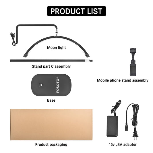 Fosoto Multifunctional Half Moon Lamp Video Ring Lash Light For Beauty Facials Salon Tatoo Live Stream Photography Photo TikTok