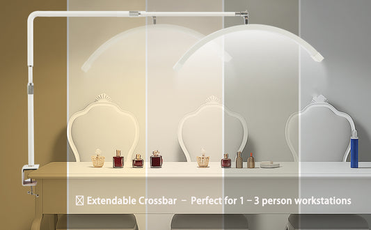 Our Half Moon Lamps feature innovative multi-angle designs: lamp heads can rotate 360°, swing 0–180°, and fold flat on walls or stands. This flexibility supports lash extension, makeup application, content creation, and clinical treatments—all without shadows or glare.